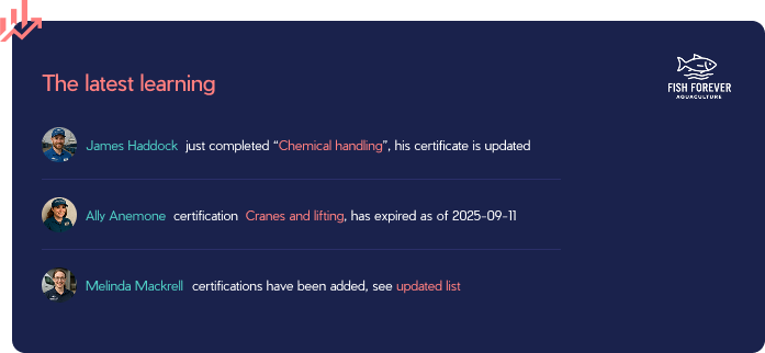 We partner with schools in aquaculture. If you hire an apprentice, chances are he already has certificates in our system. If you hire someone who previously used Blue Planet Academy their certificate will also follow them to your business.