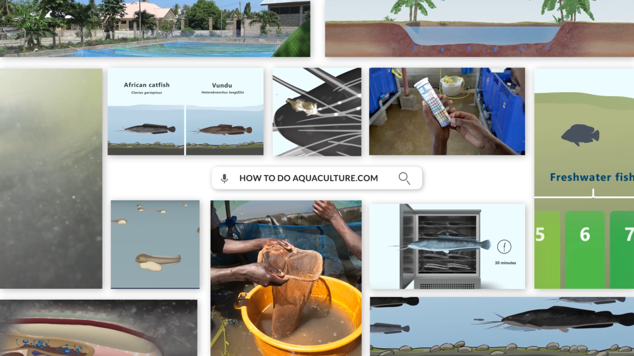 HowToDoAquaculture.com offers FREE access to over 150 instructional videos on Nile tilapia and African catfish, each tailor-made to cover essential topics in aquaculture on the African continent. From mastering production planning to implementing effective health management strategies, ensuring sustainability, and beyond, our diverse content equips you with the knowledge and skills needed to successfully run a profitable and sustainable fish farm. The videos are in English, but some include subtitles in Swahili and French.